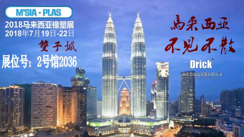 2018年馬來西亞國際塑膠展M’SIA-PLAS 2018于今日在馬來西亞吉隆坡太子世界貿(mào)易中心盛大開幕!山東德瑞克儀器有限公司為了提高自身實力,增強企業(yè)競爭力應邀前來!我們在2號館2036展位等您!本次展會由我們外貿(mào)部屈總帶隊,歡迎國內(nèi)外客戶蒞臨指導!
